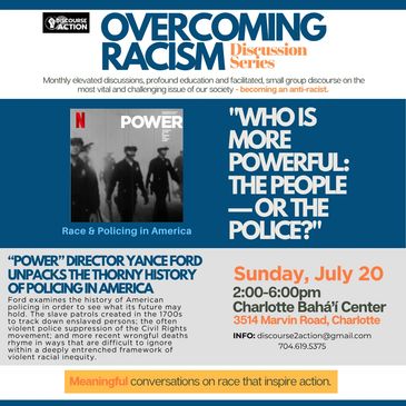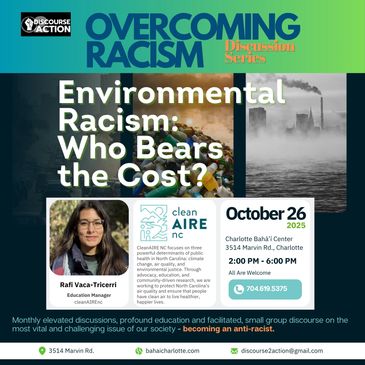 Since June 2023, the Bahá'í community of Charlotte hosts monthly conversations on Overcoming Racism aimed at education, connection, collaboration and ACTION. Every month we gather together to learn about America's most vital and challenging issue by addressing an element of society impacted by racism - and how to play our part to eradicate it.